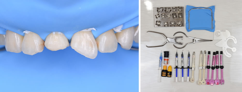 今回の症例は②③④を組み合わせて治療を行っても良いかと考えましたが、患者さまはダイレクトボンディングをご希望されました。治療後に短期間での脱離や破折が生じた場合は③④を行う可能性にご了承いただき治療を開始しました。