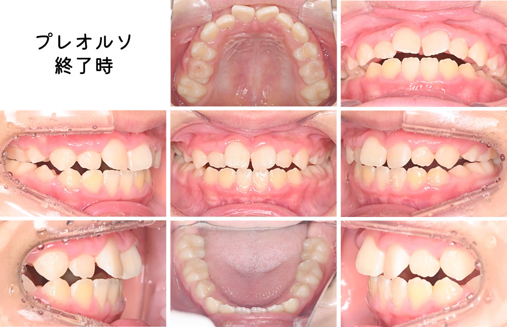 前歯が生え変わったタイミングで、今後の側方歯の生え変わりに備え、前歯の完全萌出を待ちながら、上下の顎を緩やかに拡大する効果のあるプレオルソ(こちらも夜寝る時がメインで使います)に切り替えました。