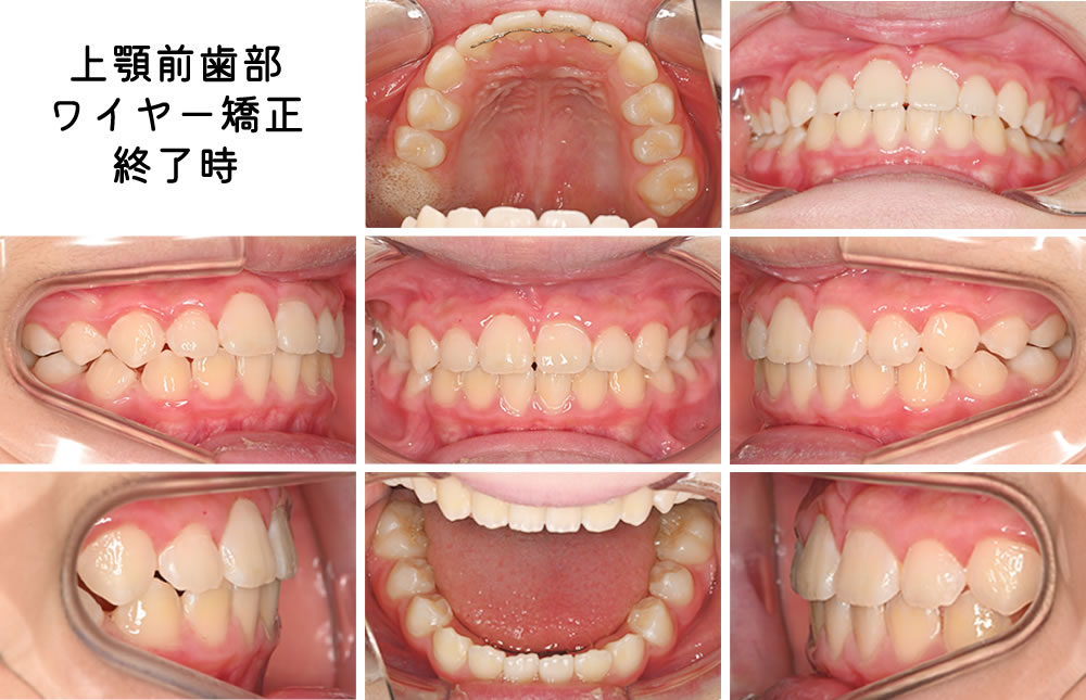 ここまでの装置を非常によく使用してくださっていたこともあり、ワイヤー矯正はわずか6ヵ月で前歯がきれいに並びました。この後は、残りの歯の生え変わりを見守る段階となります。