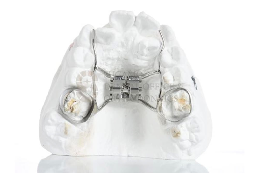 RPEは、何らかの理由で上顎が非常に狭くなってしまった場合に正中口蓋縫合に働きかけて、歯列を拡大する装置です。