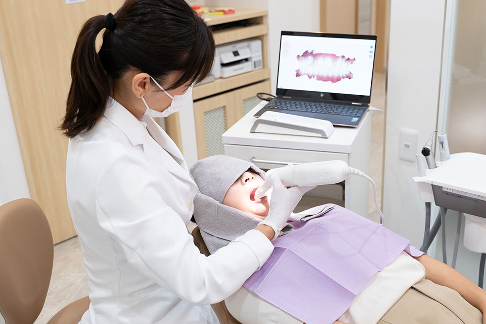 子供のマウスピース矯正「インビザラインファースト」の作成に必要な口腔内データ(歯型等)は、口腔内スキャナー(itero)で採取します。