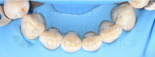 歯の表面にレジンなどで装着します。通常は、見えにくい歯の裏側に装着します。